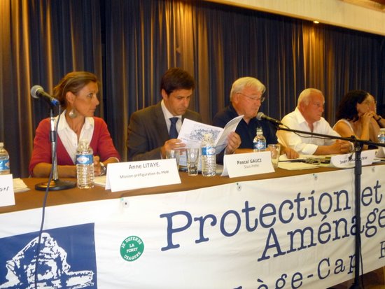 Michel Sammarcelli s’est montré plus sceptique. « Quand j’entends parler de 38 000 logements et de 100 000 habitants en plus sur le Bassin d’ici vingt ans, je suis effaré. Par exemple, le réseau d’assainissement, sans travaux énormes, ne pourra pas supporter une telle expansion. Le « toujours plus » interpelle… » Une personne dans l’auditoire a pris la parole pour estimer qu’il y a « contradiction entre ces ambitions démographiques et les politiques visant à préserver le Bassin ». - Le parc naturel marin en pleine esquisse